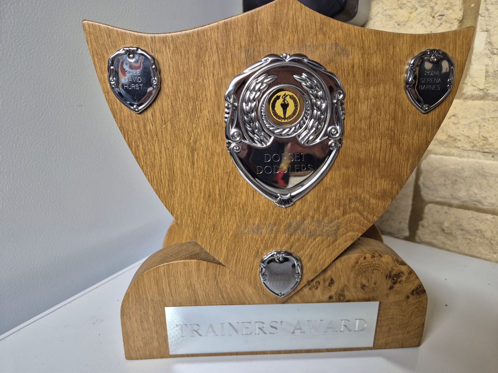 This magnificent Chairman's Shield was lovingly crafted out of a single piece of wood by our very own Matt Clayton