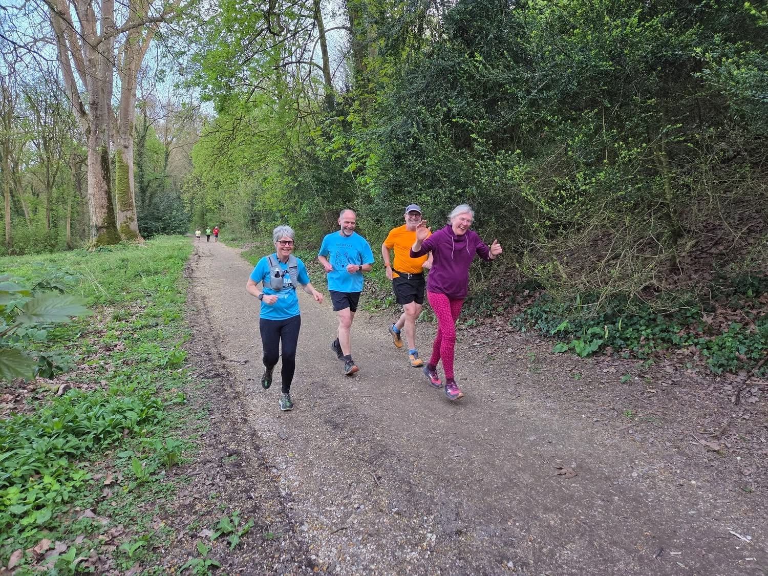 We start once the clocks change and enjoy these get-togethers all the way through until the end of September. Typically, we meet at 7pm for a 7.15pm start, or slightly earlier in April and September. There will be a choice of two or three distances to suit runners of various abilities, ranging from about 4 to 9 miles. We also welcome walkers and well behaved dogs.